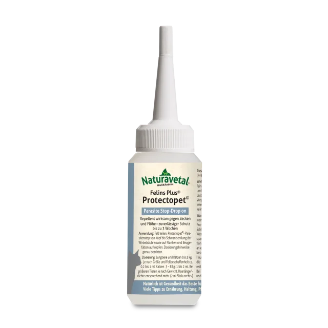 Felins Plus® Protectopet® ist ein in Deutschland registriertes Biozidprodukt zur geruchsbedingten Abwehr von Parasiten wie Zecken, Flöhen und Milben bei Katzen. Das Produkt wird äußerlich als Spot-on angewendet und entlang der Wirbelsäule aufgetragen. Nach dem Auftragen verteilt sich die Lösung selbstständig über Haut und Fell des Tieres.