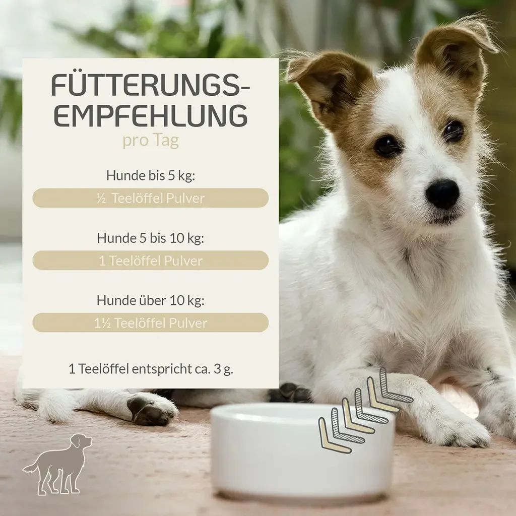1 gestrichener Teelöffel entspricht ca. 3g. Einfach ins Futter mischen.
